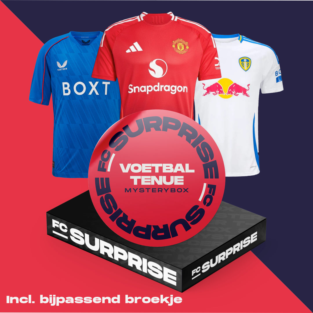 Een mysterybox met gegarandeerd een '24/'25 shirt uit één van de 5 topcompetities (Premier League, Serie A, La Liga, Bundesliga of Ligue 1).